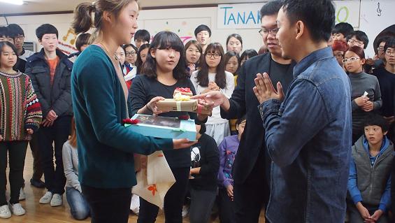 先ずは男の子4人で韓国の伝統的な太鼓の演奏。とっても迫力がありました。